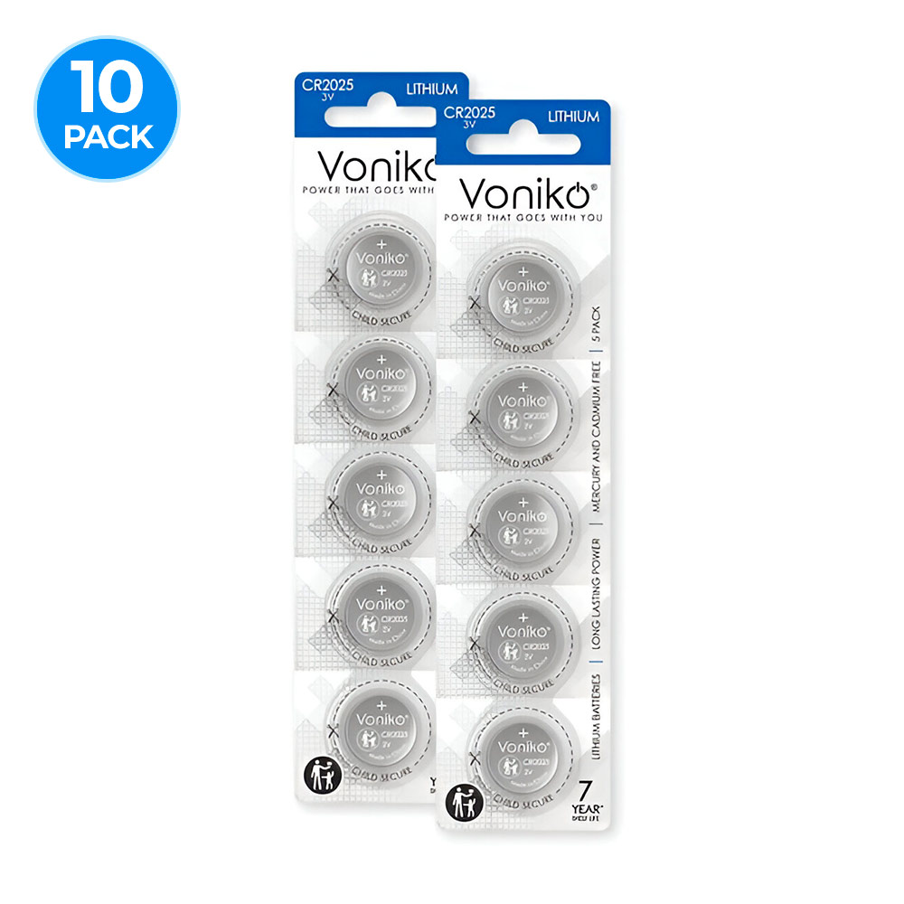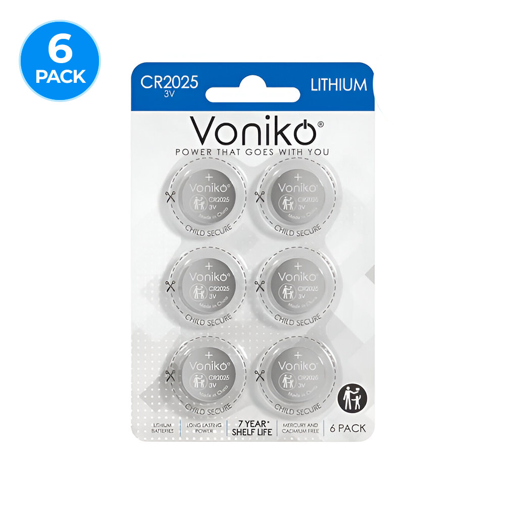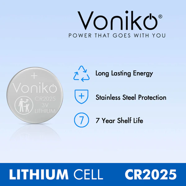 Las baterías Voniko Lithium CR2025 de 3V son la elección perfecta para una amplia variedad de dispositivos electrónicos pequeños, incluidos llaveros, calculadoras, y equipos médicos. Estas baterías de litio destacan por su rendimiento prolongado, proporcionando una fuente de energía constante y confiable. Gracias a su diseño resistente, pueden operar eficazmente en temperaturas extremas, desde -22°F hasta 140°F (-30°C hasta 60°C), y su tecnología anti-fugas garantiza la seguridad de tus dispositivos.